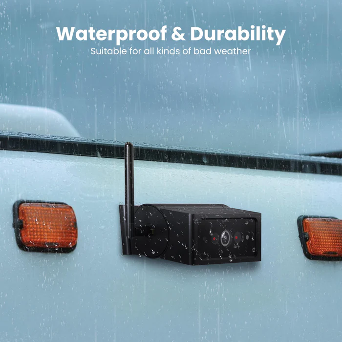 Solar4B Max is the upgraded Solar4B — now with a bigger 7.2″ 1080P screen, stronger dual-antenna signal, and new DVR loop recording. Wireless magnetic mount, 1-minute install, 120-day battery, and IP69K waterproof design make it perfect for RVs, trailers, and trucks.