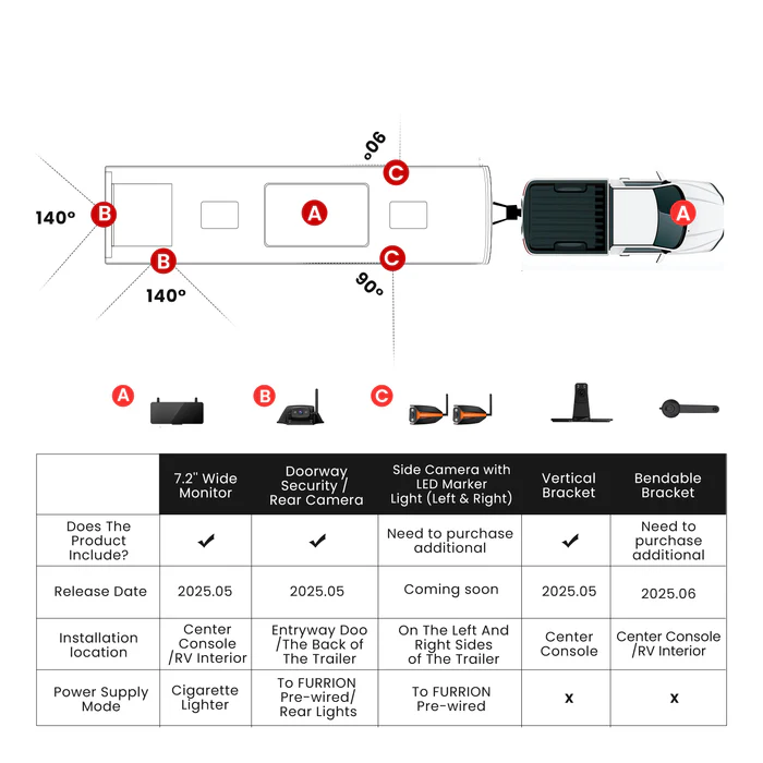 Effortless plug-and-play camera made for Furrion pre-wired RVs. Quick, drill-free setup in under 40 minutes. Enjoy 1080P HD video, powerful night vision, 500ft reliable signal, and full DVR recording. 150° wide view, IP69K waterproof, works in any weather.